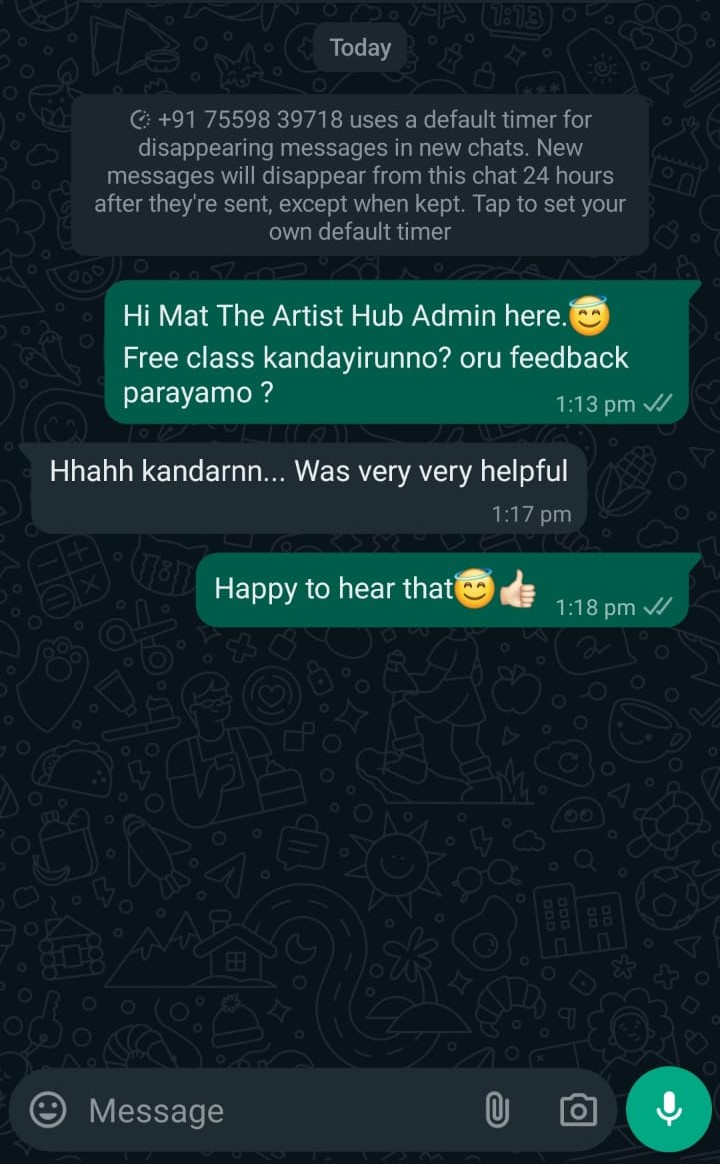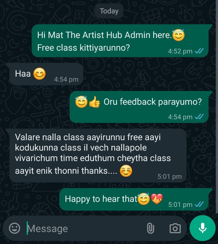 In February 2018, we embarked on a creative journey with the launch of our YouTube Channel, ‘Art and Talk’, showcasing art-related vlogs and videos. Our content features explorations from across Kerala, where we engaged with local artists, visited esteemed art exhibitions, fine arts colleges, and discovered an array of captivating artworks.Some years back in May 2021, Mat the artist hub started as an Instagram Art entertainment content sharing page called Malayalam Art Trolls (Short form M.A.T).From 2021 to 2024, It was a consistent journey into the field of Art. From 0 followers, MAT started getting more followers and more Art content creators joined and formed a good support team.Slowly, MAT transformed into a community and that was the first Art Meme content creating community in Kerala. Gradually MAT grew with the support of various talented Artists from Kerala and kept adding thousands of artists every year. For all the artists in Kerala, MAT made them laugh, helped them think, and taught them, so all the Malayali artists loved MAT the same way we loved them. Now MAT has13,000+ Art followers, upto 5 lakhs+ account reach in every 30 days, 2 million+ single video views, 2000+ contents across different platforms, 1000+ subscribers on YouTube channel, 6+ WhatsApp groups, 1000+ artists on Facebook group, 30+ ideators team, 50+ content creators, 5 types of workshop, 2 types of courses, 3 graphic designers cum video editors, 5 member team of IT and AI developers, 500+ Art students, 5+ Art teachers, 4 Academic mentors, 10+ meme makers, 3 member core team, Experienced Art teachers and Art youtubers conducting sessions, Instagram channel support, Telegram group support, offline gatherings and many more. MAT is on going this journey with all the love, through the way of Art. Keep loving ART, keep loving MAT.